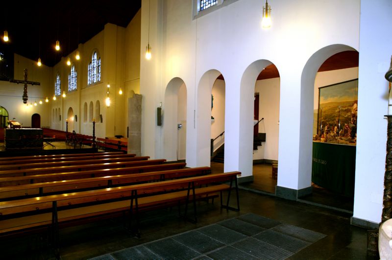 Die frühere Taufkapelle seitlich des Haupteingangs erinnert in ihrer Ausstattung an die Franziskaner und das ursprüngliche Kirchenmobiliar. Neben der Statue des hl. Franziskus und des hl. Antonius von Padua (1195-123 J) erkennt man in den Holzreliefs des ehemaligen Hochaltaraufbaus die Heiligen Clara und Coleta sowie Paschalis und Nikolaus von Tolentino aus dem Franziskanerorden. Auf drei in Bronze gegossenen Erinnerungstafeln sind die Namen sämtlicher, in der Pfarrei I tätig gewesenen Franziskaner aufgezählt.
