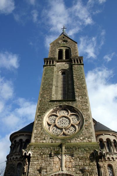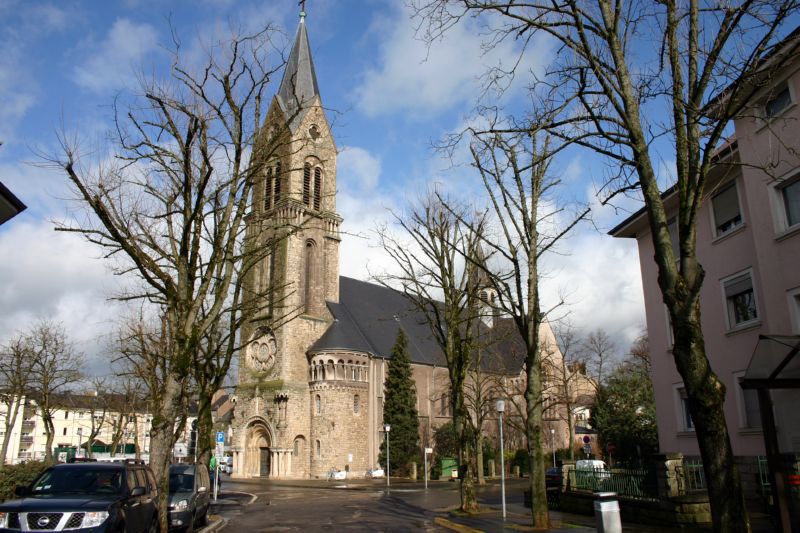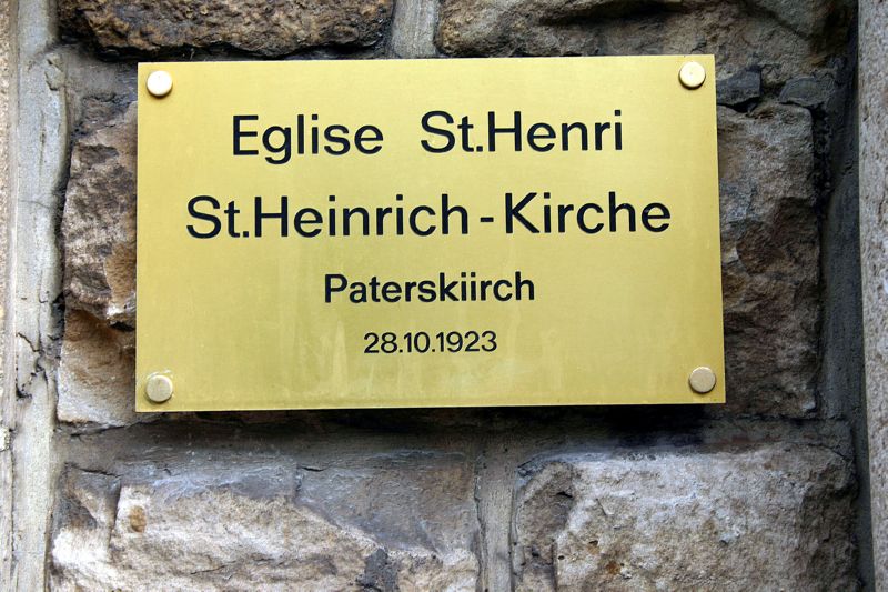 In diesem Kontext situiert sich das Entstehen der St. Heinrich Kirche. Teilweise umgeben von Arbeiterwohnungen, die im "Gelsenkirchener Stil" errichtet wurden, entstand von 1922 bis 1923 die heutige Pfarrkirche auf dem Gelände des Eisenhüttenwerks der Terres-Rouges-Gesellschaft und auf deren Kosten. Die Grundsteinlegung fand am 31. Juli 1922 statt, die Konsekration des Kirchengebäudes am 28. Oktober 1923. Als Architekt fungierte H. Grass von der Hüttengesellschaft Terres-Rouges. Treibende Kraft im Entstehen des Bauwerks war Henri Coqueugnot, Generaldirektor der Hüttengesellschaft. Sein Patrozinium führt das Gotteshaus zurück auf Henri Schneider, den im Ersten Weltkrieg gefallenen Sohn von Eugene Schneider (Creusot), dem Vorsitzenden des Aufsichtsrats der Terres-Rouges-Gesellschaft. Von Anfang an lagen Gottesdienst und Seelsorge in den Händen der Franziskaner aus Metz. Gleichzeitig zum Entstehen der Kirche und mit dieser baulich verbunden, errichteten sie ein Klosterge- bäude, in welches sie am 23. August 1923 einzogen. Erster Oberer (Guardian) war Pater Raphael Legnil (t1936) aus Kontz (Moselle). Ihrer Niederlassung, die einem Wunsch von Bischof Pierre Nommesch (1920-1935) entsprach, verdankt die Kirche bis auf den heutigen Tag die volkstümliche Bezeichnung „Pätrekiirch".